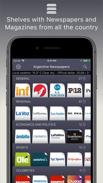 Argentine Newspapers es una aplicación diseñada para facilitar el acceso a una amplia gama de periódicos y revistas de Argentina. Con una interfaz intuitiva, permite a los usuarios consultar noticias de diversas categorías como generales, regionales, económicos, deportivos, de celebridades y de moda, todo desde un solo lugar. La aplicación incluye medios de renombre como Infobae, Clarín y La Nación, así como publicaciones regionales de distintas provincias, lo que la convierte en una herramienta valiosa para quienes buscan información actualizada y variada.